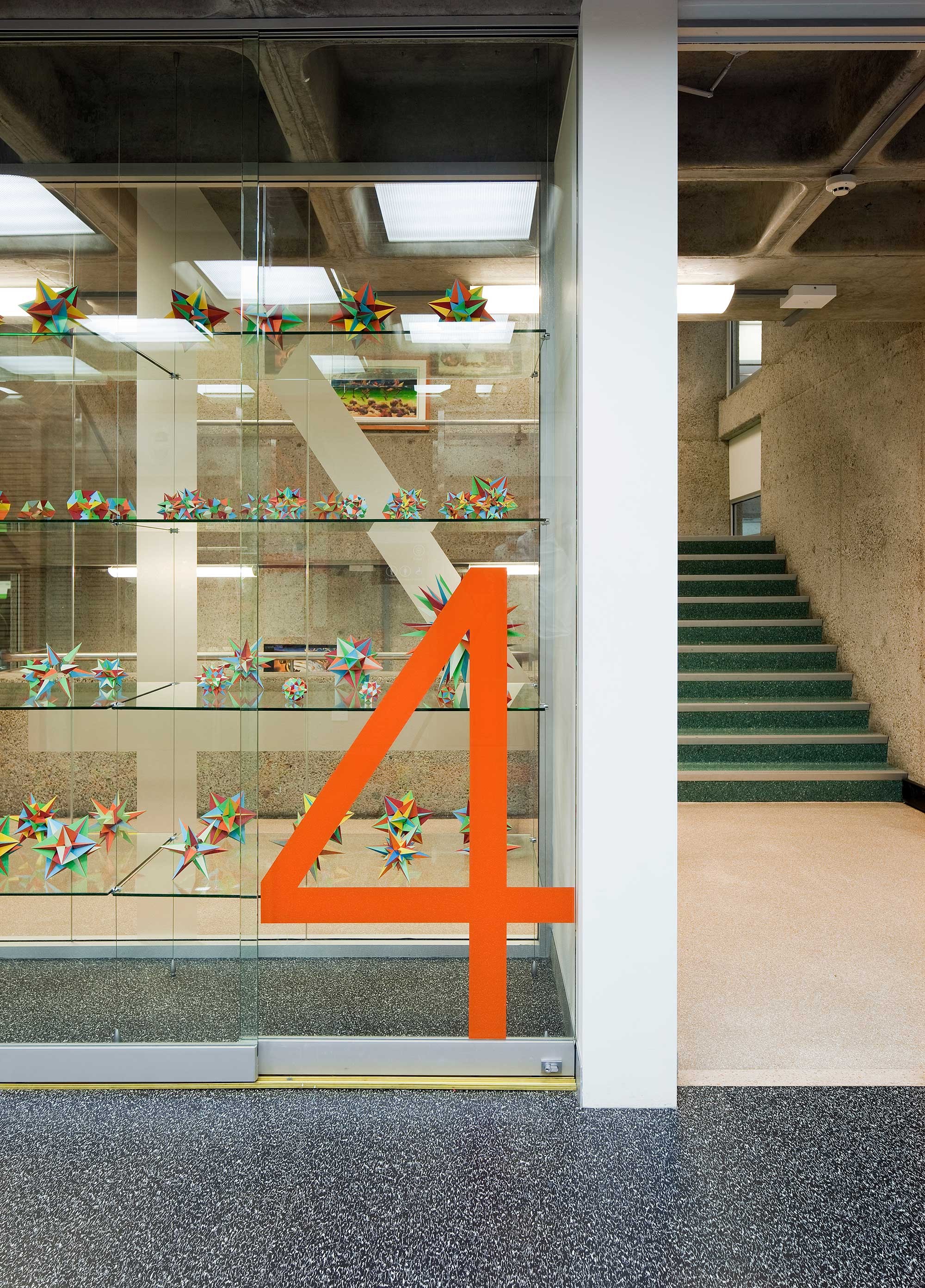 The floor plate encompasses multiple study zones of differing styles and operation, bookable meeting rooms, a tutorial room, a media lounge and a group study space that is openable to fresh air through the use of operable windows and enclosed by glazing.